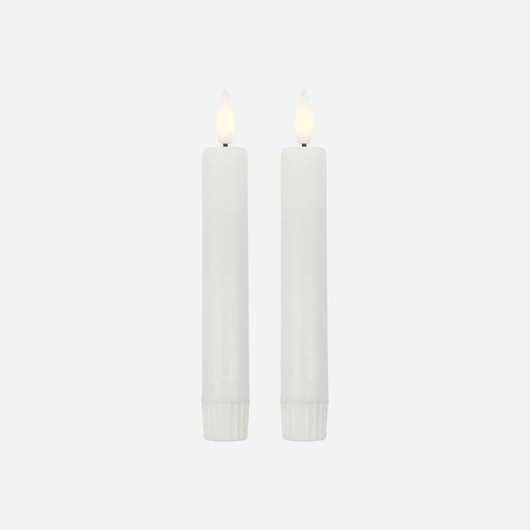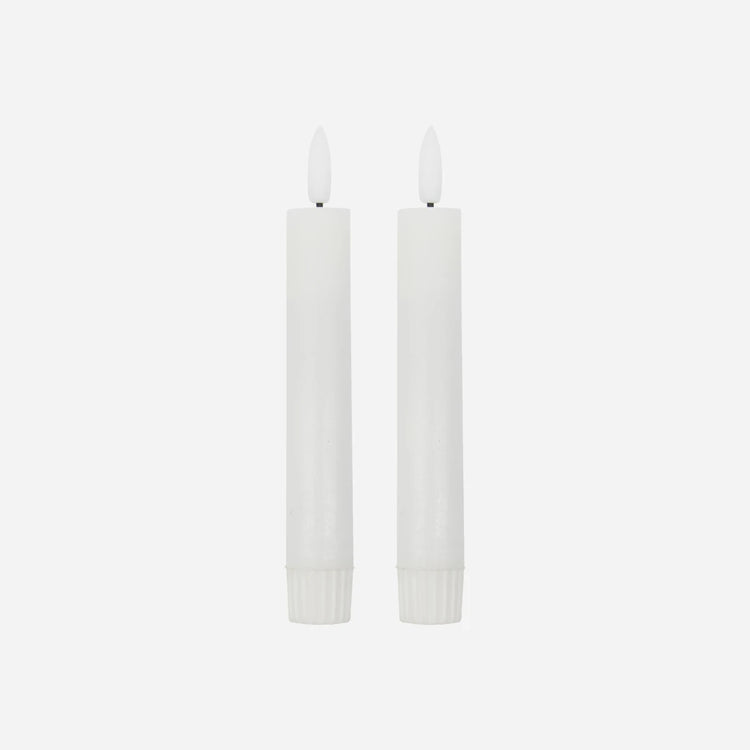 Want the intimate atmosphere that only candles can create, but without all the worry that goes with them? This pack of 2 white LED candles from House Doctor come with a flickering glow that mimicks the real deal, as well as a wax feel, so you don't have to compromise on the look. And with a practical timer function, they are switched on for 5 hours, so you can enjoy your evening without worrying about them. Use the candles in your favourite candle holder for casual dinners, parties and simply for creating those special moments. Especially in these dark winter months.