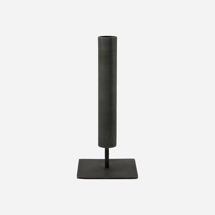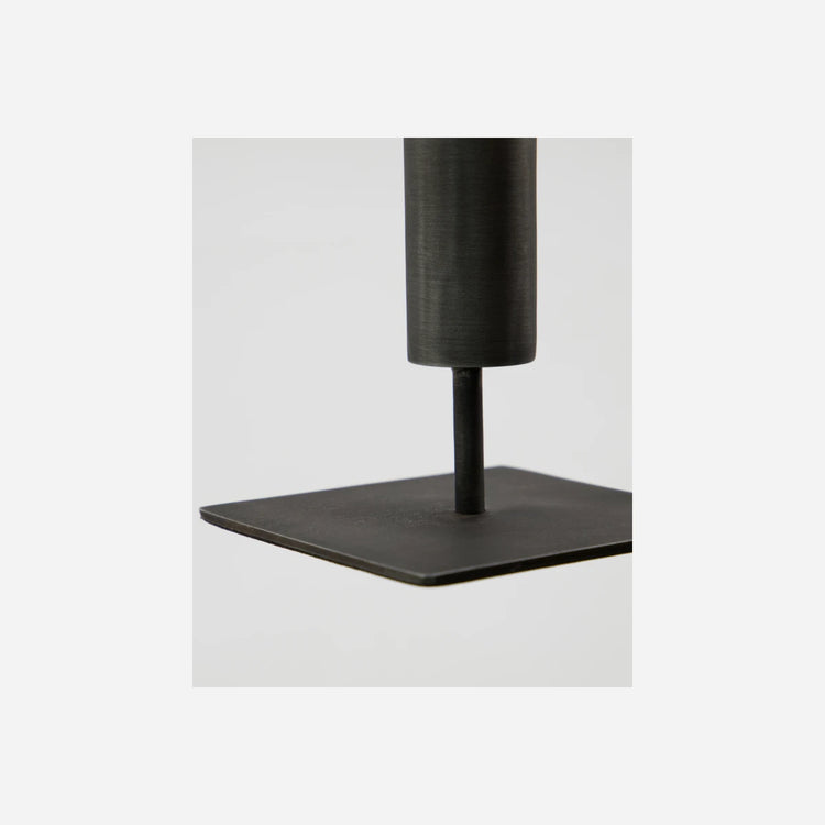 Handmade from black iron, this candle holder introduces modern elegance to your home decor. Its sleek and slender design fits perfectly in any setting, whether paired with brass candle holders for a softer touch or with taller pieces from the same collection.- Handmade craftsmanship- Sleek and slender design- Black iron material- Fits standard candles (2.2 cm diameter)Bring elegance and sophistication to your home with this stunning candle holder.