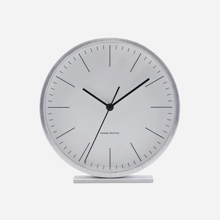 A clock does more than tell the time. It completes your decor. With Hannah from House Doctor, you get a decorative table clock. Due to its simple, balanced and elegant design, you can place this clock on a cabinet in the living room or on your bedside table in the bedroom. The clock comes in a cool silver colour, which adds a timeless and elegant touch. Place the clock where it makes most sense, and move it if you want to.