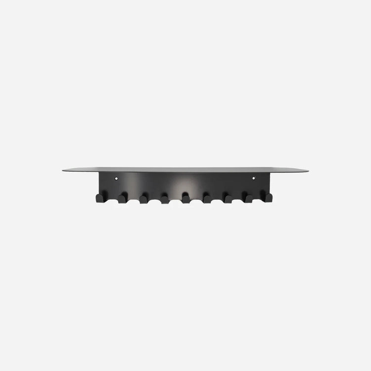 Bring order to your hallway and wardrobe with the Book coat rack from House Doctor. A black coating finishes the contemporary design that is ideal for the home in need of a storage solution that brings lightness to the home décor. With 9 hooks and a shelf, there is plenty of room for jackets, bags and whatever you want to store and organise. Hang the coat rack in your hallway or bedroom and use it as a space-saving alternative to a coat stand or rack.