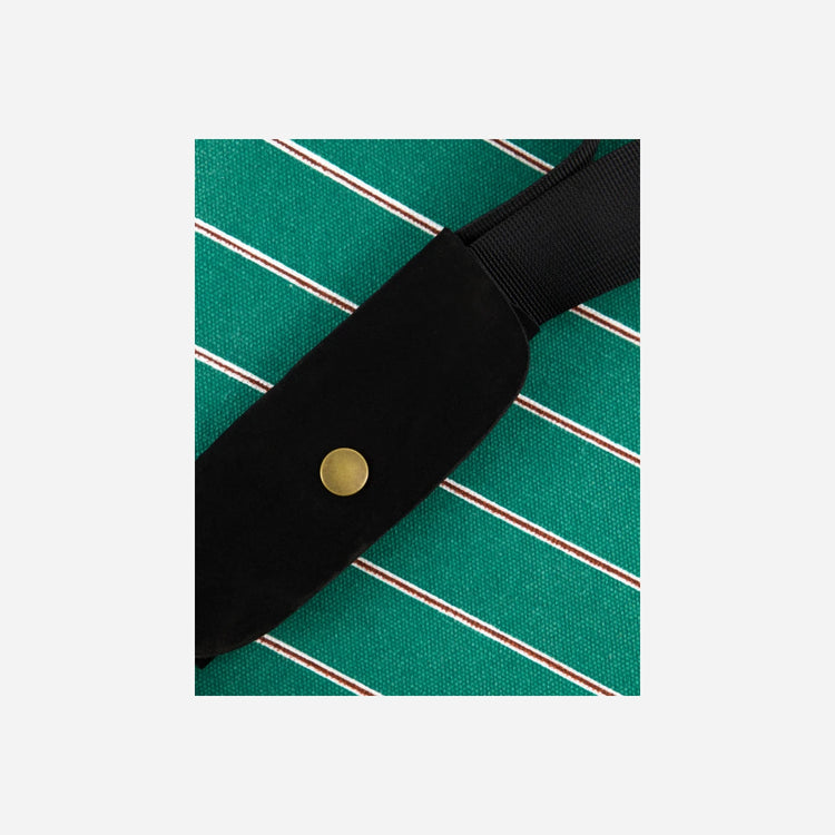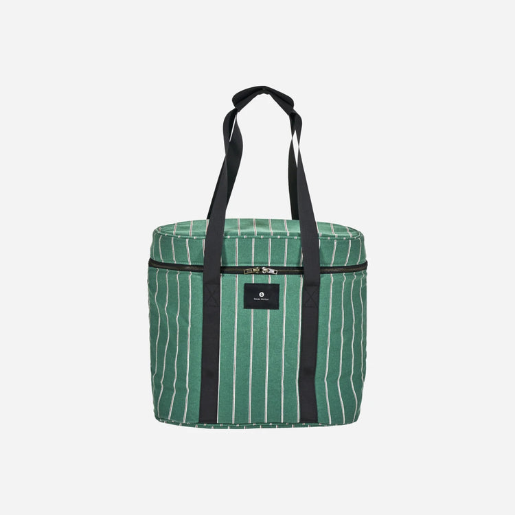 Enjoy your picnic with this stylish cooler bag, perfect for keeping beverages cold during outdoor outings. Crafted from a durable blend of polyester, cotton, and viscose, its green base is adorned with off-white and brown stripes for a sophisticated touch. The thermally insulated interior ensures your drinks remain cold, making it an ideal companion for park visits, beach trips, or forest picnics.