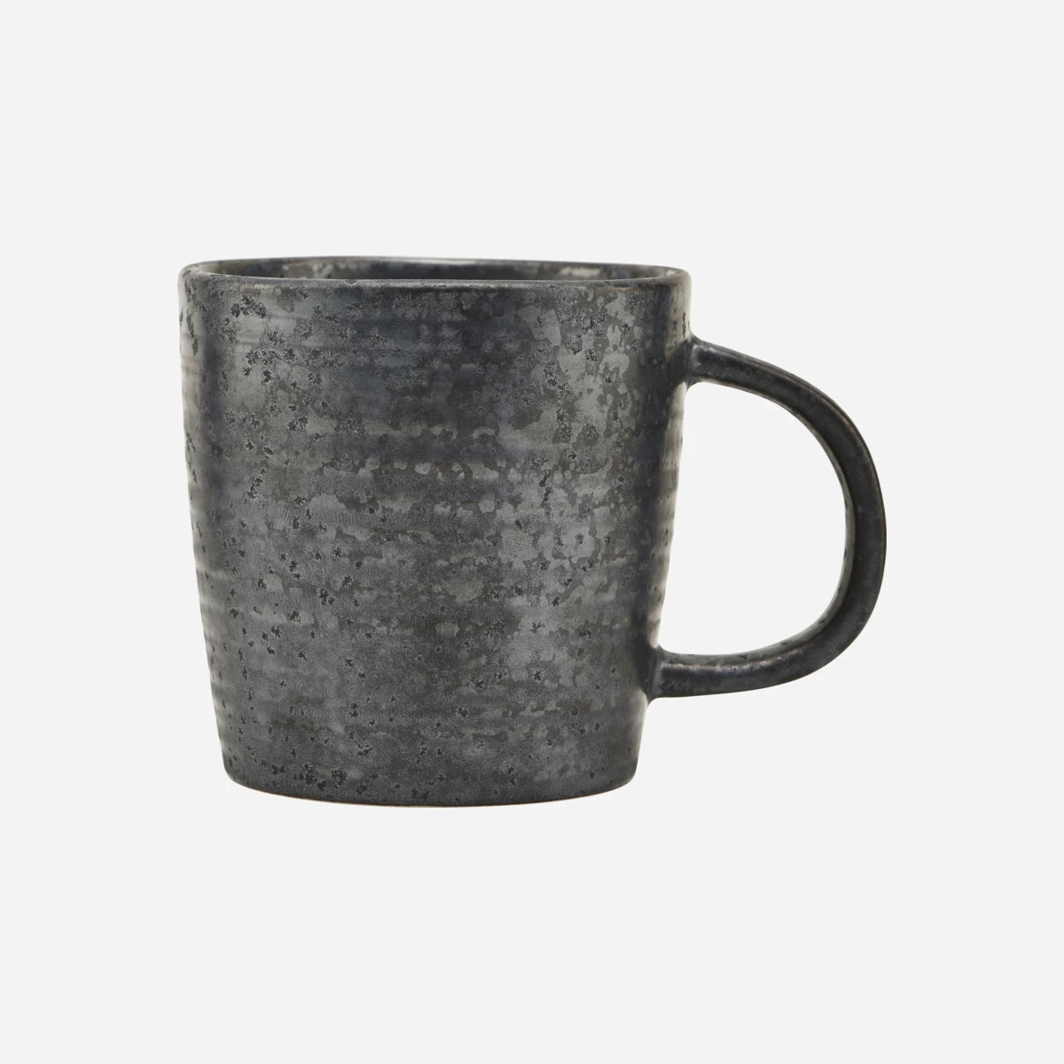 The Pion cup made by House Doctor is just the thing for your coffee, hot chocolate and tea. The large handle makes it easy for you to hold the cup that has a matte, reactive glaze. To create the unique, oxidised look of the surface, a special agent reacts with the glaze during the burning process. You get a stunning porcelain cup that is suitable for both everyday coffee breaks and tea with friends. Set a rustic table with elements from the Pion dinner set or mix with dinnerware in other materials and colours for a personal table arrangement. Due to the matt texture of the glaze, scratches might occur over time as you use your Pion item. This simply adds to the charm and rugged appeal of the design.