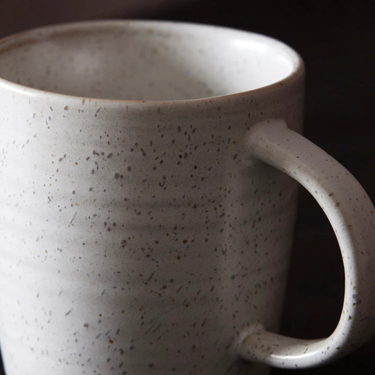 Enjoy your coffee, tea and hot chocolate with the Pion cup from House Doctor. The large handle creates a balance in the design and makes the cup comfortable to hold. It is made of porcelain and has been given a white/grey glaze with speckles for an everyday look and feel. Use it for a well-deserved tea break, a casual cup of coffee with friends and slow mornings. Combine the cup with the bowls and plates from the Pion dinner set and set a light and rustic table. Due to the matt texture of the glaze, scratches might occur over time as you use your Pion item. This simply adds to the charm and rugged appeal of the design.