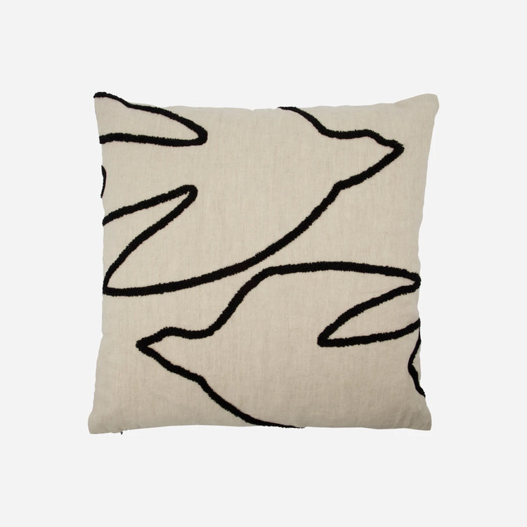 Handcrafted with care, this cushion cover is a beautiful fusion of cotton and linen, featuring a sand-hued backdrop adorned with elegant off-white bird embroidery. This unique design brings a classic touch to your living room or bedroom, effortlessly complementing other cushions and adding an aesthetic flair to your home decor.