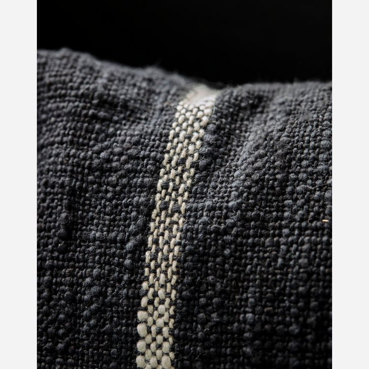 Elevate your living space with this handmade cushion cover, featuring a sophisticated black and off-white striped design. Crafted from soft cotton, it adds a touch of elegance and comfort to any room, perfectly complementing other home textiles.- Handmade for unique charm- Soft cotton material- Yarn-dyed for lasting colours- Convenient zipper closureAdd a touch of sophistication to your decor. Order now and transform your space.
