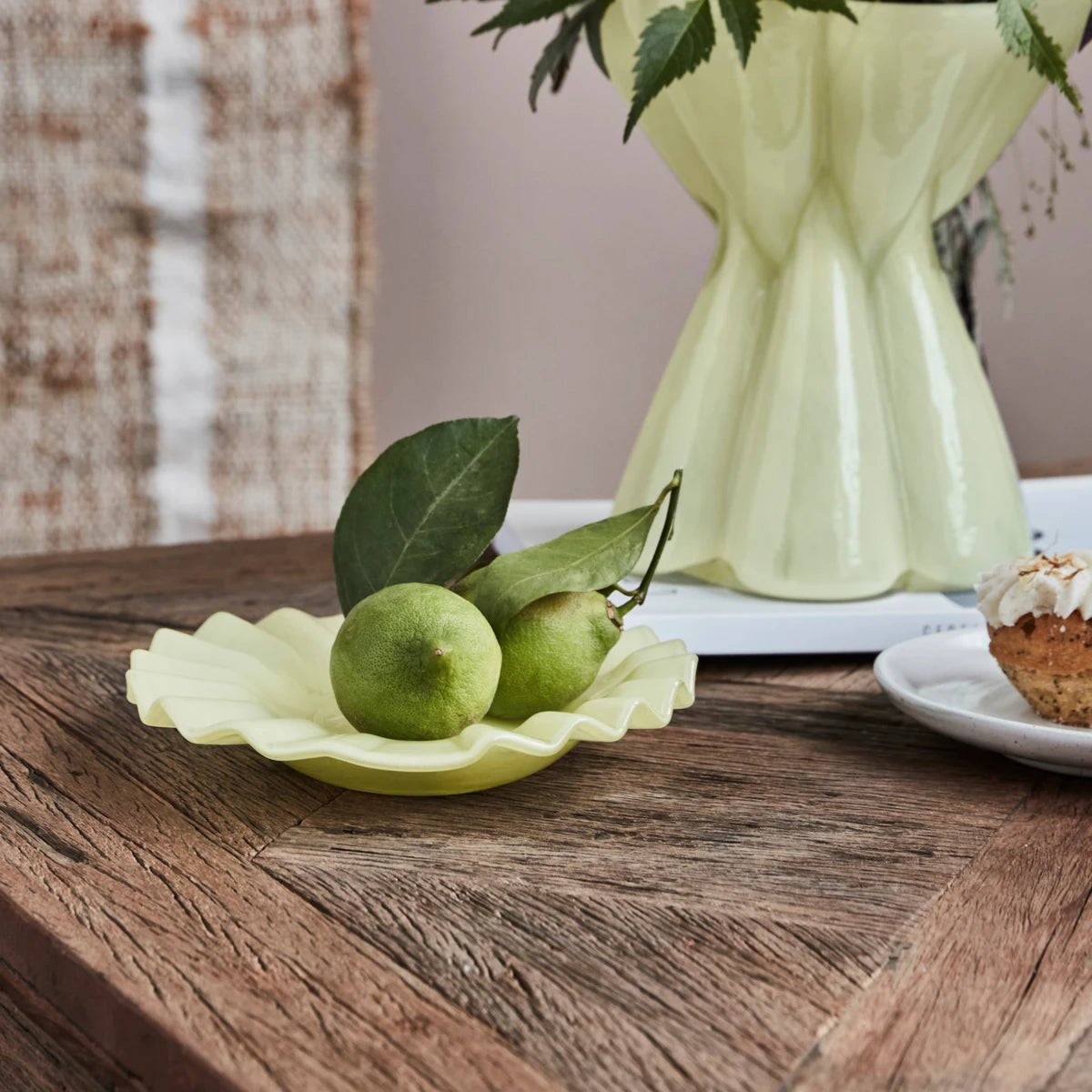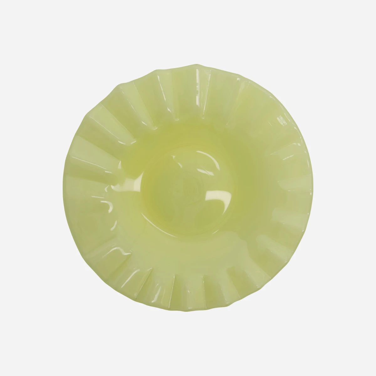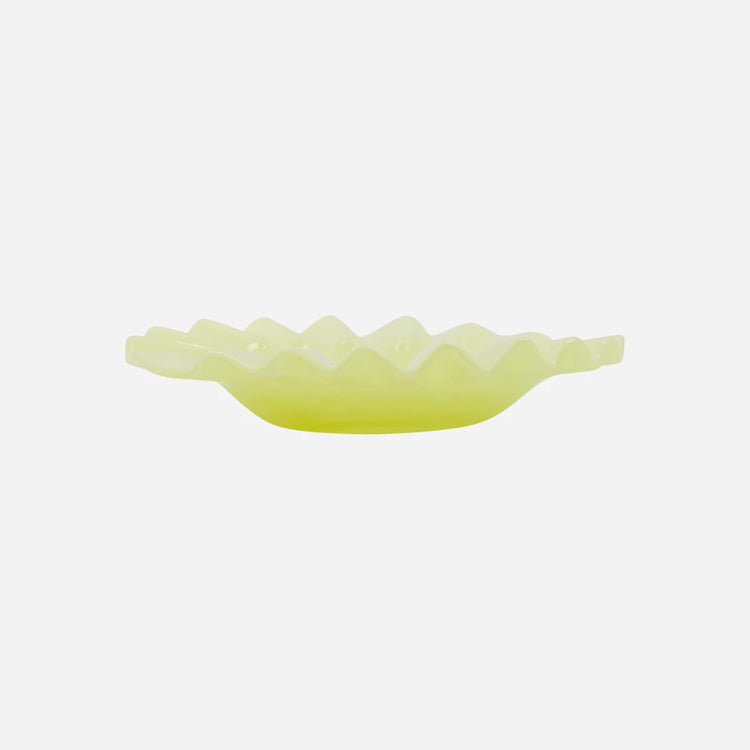 Add a feminine touch to your interior with this delicate glass piece. Mouth-blown and handmade, its soft yellow hue brings warmth and elegance, making it perfect for displaying jewellery or a candle in a living room or bedroom. This versatile item adds a subtle charm to your decor.