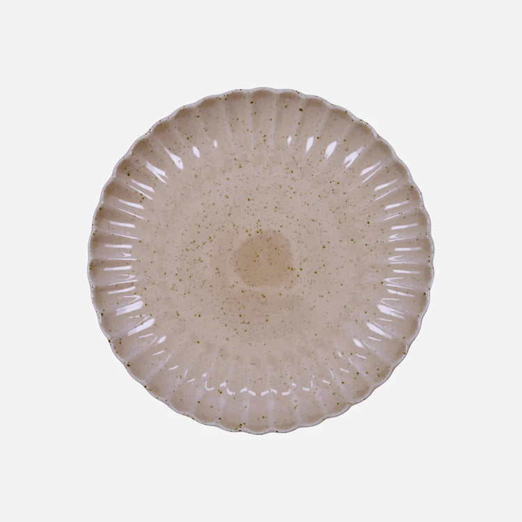 This handmade stoneware dinner plate in soft rose brings elegance and warmth to your table. Beautiful scalloped edges and a reactive glaze add detail and individuality to every setting. Mix it with matching rose mugs and bowls for a coordinated look or combine it with contrasting pieces for a dynamic table arrangement.