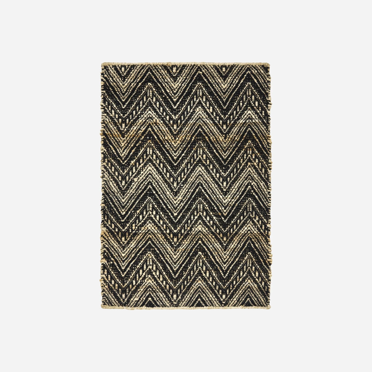 Handwoven with a mix of jute and cotton, this door mat features a captivating ethnic pattern in natural and black tones. It's an ideal choice for your front door, terrace entrance, or a smaller room, creating a warm and modern aesthetic in your home. The unique design and handmade quality ensure a distinctive addition to your decor. - Handmade with jute and cotton. - Ethnic pattern in natural/black. - Perfect for entrances or small rooms. - Adds warmth and modern style. Refresh your entrance with this stylish handmade mat.