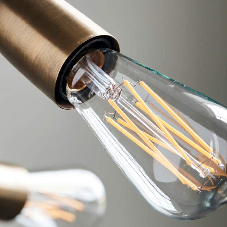 Edison is a dimmable E27 LED bulb. It is see-through and with 6 filaments and a classic shape, it resembles the incandescent bulb designed by Thomas Edison over 100 years ago. A vintage look like this is ideal for a simple, contemporary socket or a lamp that shows the entire bulb. It creates a soft, warm light with a natural colour rendering and low-level brightness of 150 lumen which is ideal for decorative lighting throughout your home. And since the base is made of brass, the bulb is more robust.