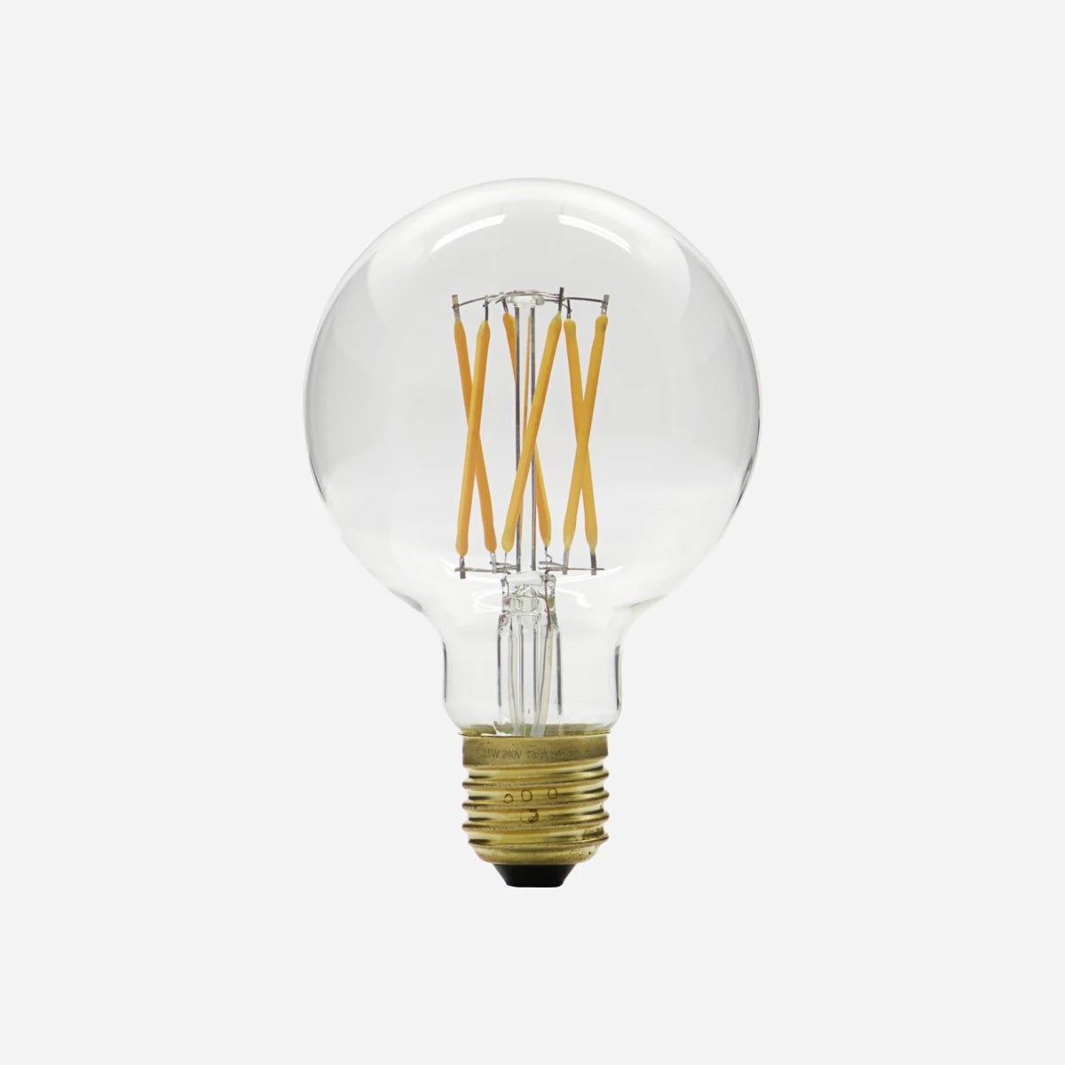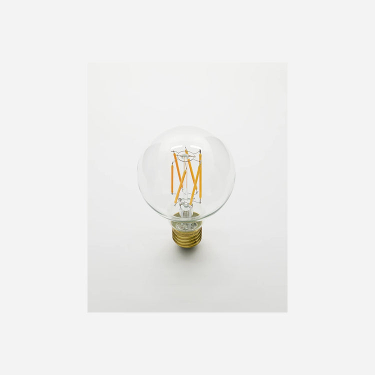 Globe is a round and dimmable E27 LED bulb. With see-through glass and 6 filaments, it has a classic look which adds character to the lamp and the room. Also considering its large size. Put it on display by pairing it with a simple, contemporary socket or a lamp that shows the entire bulb. It creates a soft, warm light and comes with a low-lewel brightness of 150 lumen which is ideal for decorative lighting throughout your home. And since the base is made of brass, the bulb is more robust.