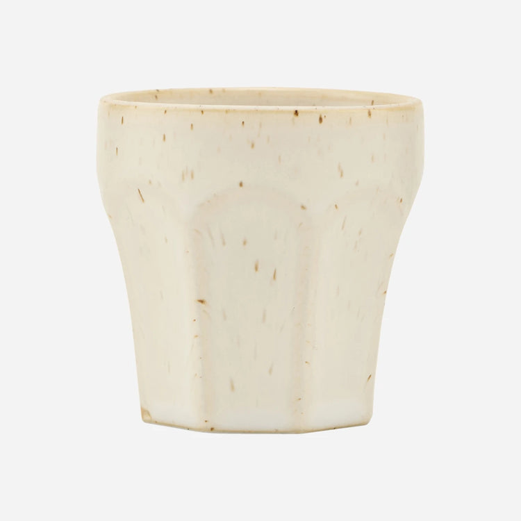 This stoneware espresso cup from House Doctor is perfect for those mornings when you dont have time for a filter coffee. Berica comes with a fluted design and a glaze with tiny stains in it. This elevates the design and turns the espresso cup into the perfect companion for your shot of caffeine. The design does not come with a handle, but the fluted look makes the cup comfortable to hold. Set a breakfast table in light tones or mix with the wide range of House Doctor dinnerware for a stylish table setting.