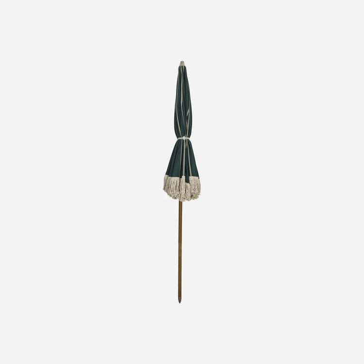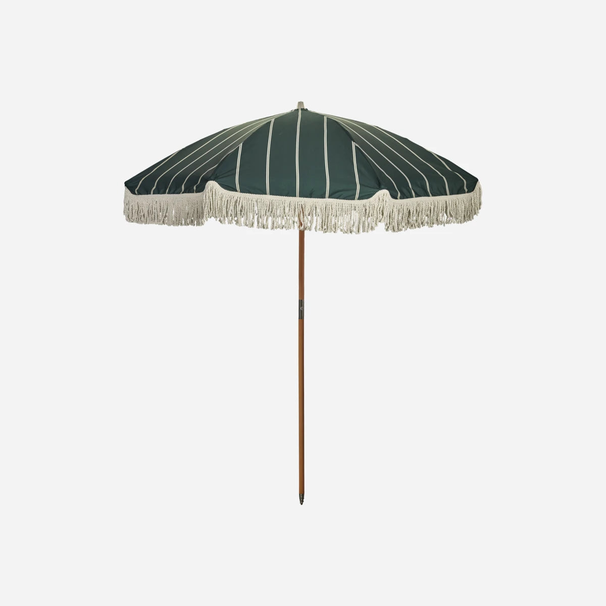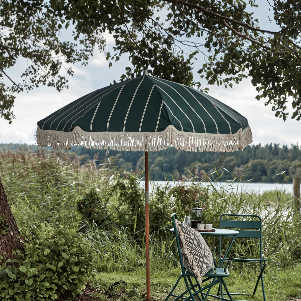 Enjoy a warm summer's day in the shade thanks to this garden umbrella from House Doctor. Beige stripes on a dark green background come together with long, thick fringes to add the finishing touch and create a look with an unmistakable hint of vintage. Whether your terrace is furnished with wooden, concrete or metal furniture, this garden umbrella elevates the overall look with refined aesthetics. The wooden pole can be taken apart, so you can put the garden umbrella in the bag for easy storage. This also makes it easy for you to take the umbrella with you for an outing or a day at the beach.