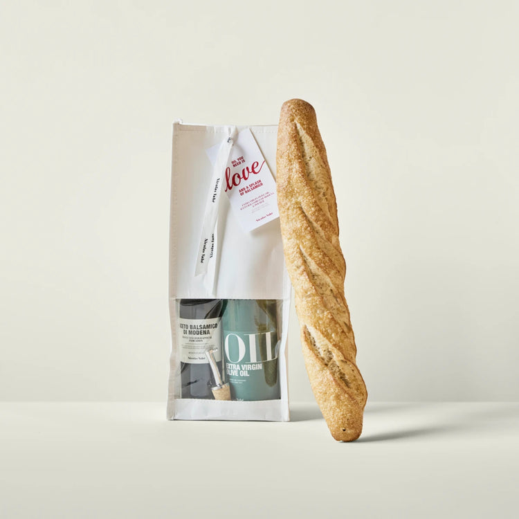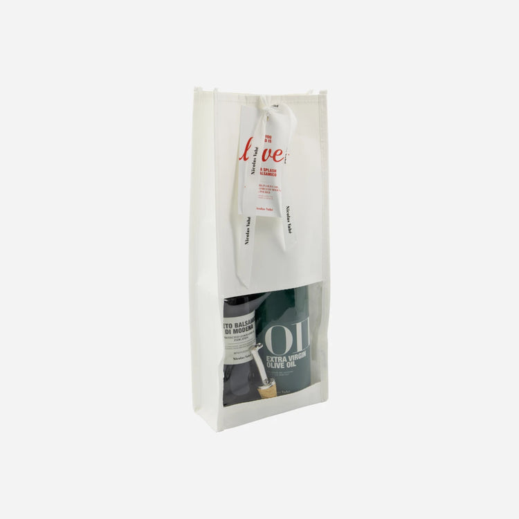 A thoughtful gift bag from Nicolas Vahé centred around high-quality basics. “Oil You Need Is Love…” features Italian olive oil and PGI balsamic vinegar — essentials for salads, dipping, and everyday meals. Complete with a stainless steel pourer and gift tag.