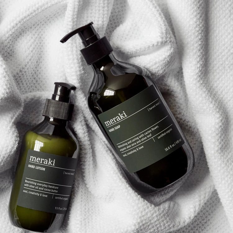 A gentle and effective, certified organic hand soap that cleans and nourishes the skin. Harvest Moon from Meraki nourishes and moisturises the skin thanks to glycerine, aloe vera, olive oil and extracts from cactus. Certified COSMOS organic by Ecocert.