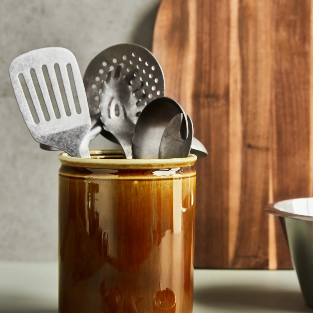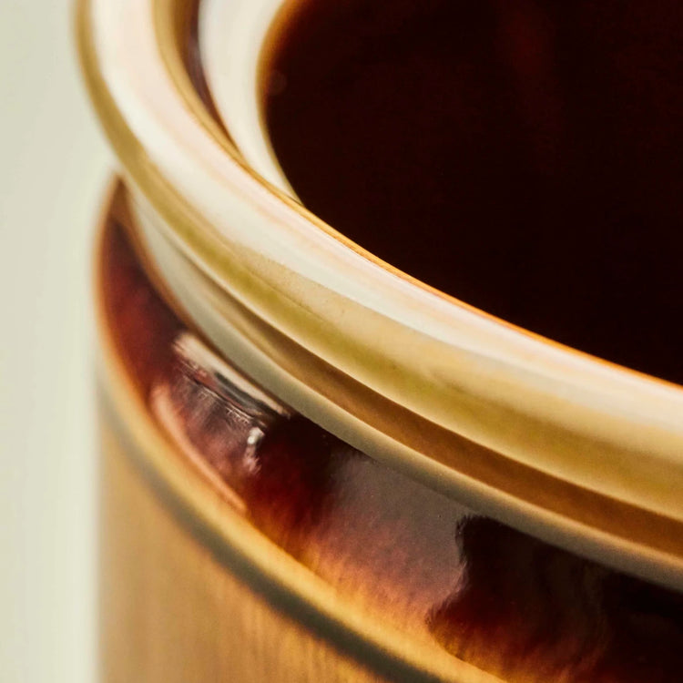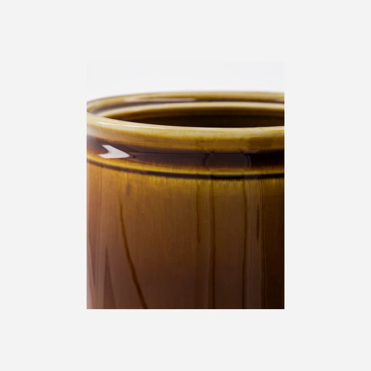 A large jar with a smooth, retro-inspired brown glaze that injects a sense of warmth into your kitchen. Use it to gather your many utensils by the oven or to store your coffee capsules - basically anything that does not require a lid. Into fresh herbs? Use the jar as a planter for basil or thyme and place it in the windowsill. Whether you let it blend in with dark colours or have it stand out among brighter hues, this jar from Nicolas Vahé adds the final touch.