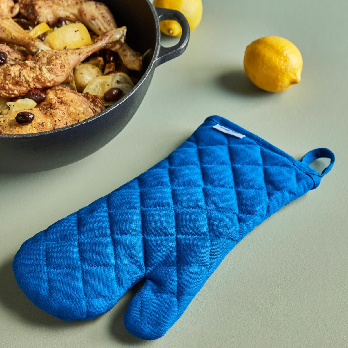 This kitchen glove from Nicolas Vahé unites functionality and design. Made of cotton quilt in a thick quality, you get a good, comfy grip as you prepare and handle your food. What really drives the design home is the vivid shade of blue that brightens up your kitchen decor. When you're done cooking, hang the kitchen glove on the wall with your tea towels.