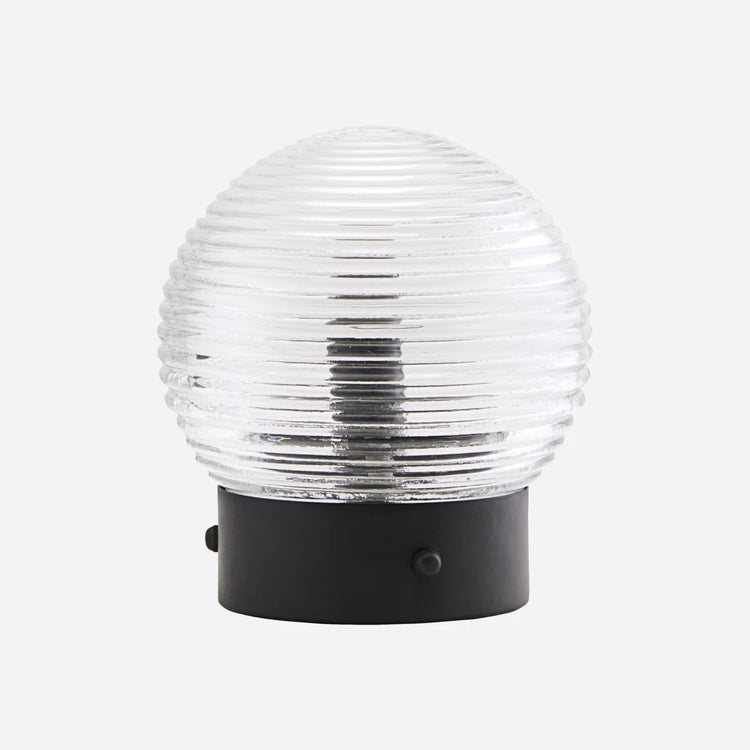House Doctor presents this table lamp, Daia, which is made in clear glass with beautiful textures. Use it as a table lamp on the shelf in your living room or as a wall lamp by your bed. No matter where you place it, the beautiful lamp provides your home with warmth in a decorative way. The sculptural design of the lamp will provide the home decor with an artistic look and you can easily combine the lamp with other colours and materials.