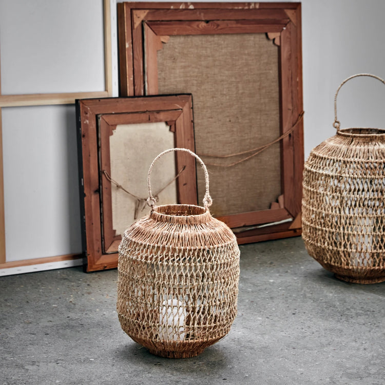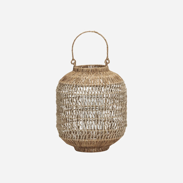 Handmade from jute, iron, and glass, this lantern infuses any space with a warm, rustic charm. Perfect for both indoor and outdoor settings, its natural finish and unique craftsmanship create a cosy, inviting atmosphere.- Handmade craftsmanship- Natural jute material- Versatile indoor/outdoor use- Cosy, inviting glowEnhance your home with this exquisite handmade lantern.