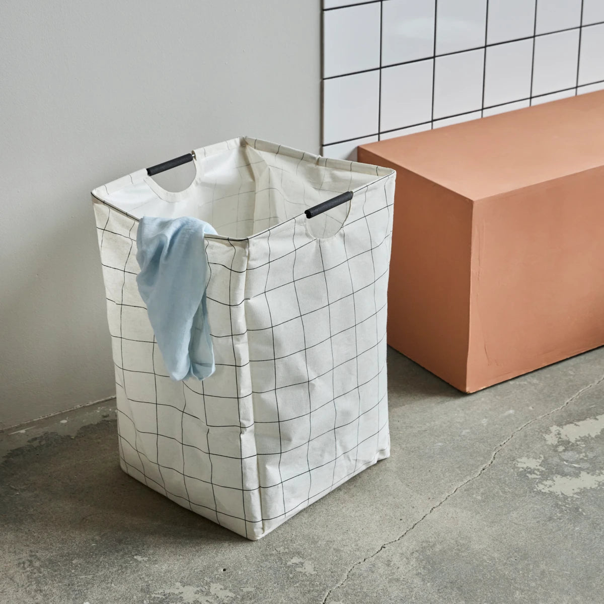 The HDSquares laundry bag is designed with a graphic, minimalist pattern making it a stylish storage solution. With built-in handles it is easy to carry around.