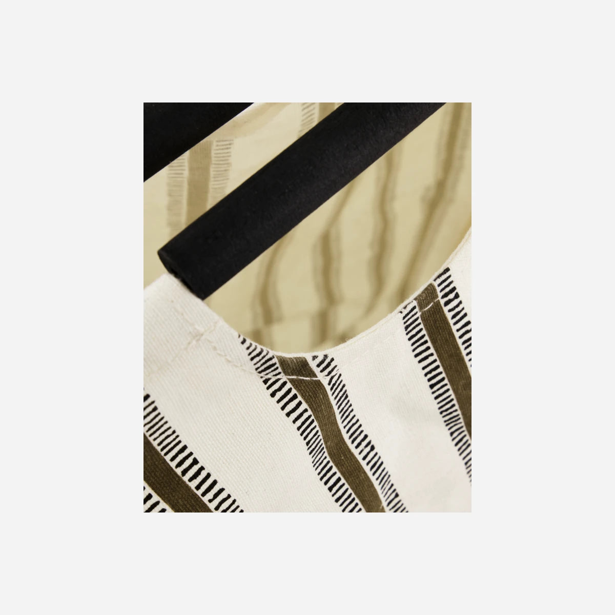 Introduce elegance and functionality to your bathroom with this foldable canvas laundry basket. The off-white base adorned with an ethnic-inspired brown print seamlessly integrates into various decor styles. Ideal for laundry or as a storage solution for blankets and toys, this versatile basket combines practicality with aesthetic appeal. Its lightweight and foldable design ensure it is easy to store and move, making it a smart choice for maintaining an organised space.