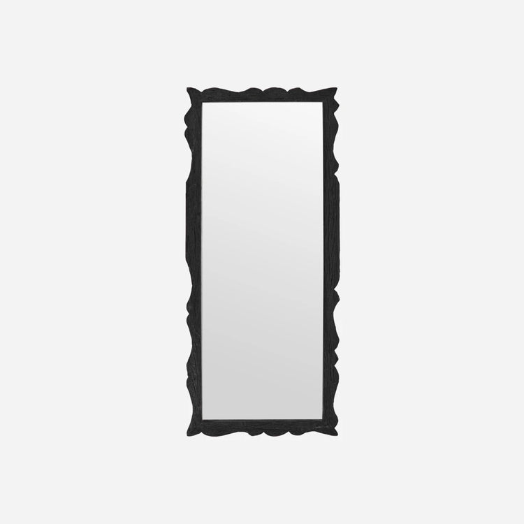 This handmade mirror adds a distinctive touch to your interior, featuring a beautifully carved, wavy frame in recycled wood. The rich brown finish brings warmth, while each frame reveals its own unique character.