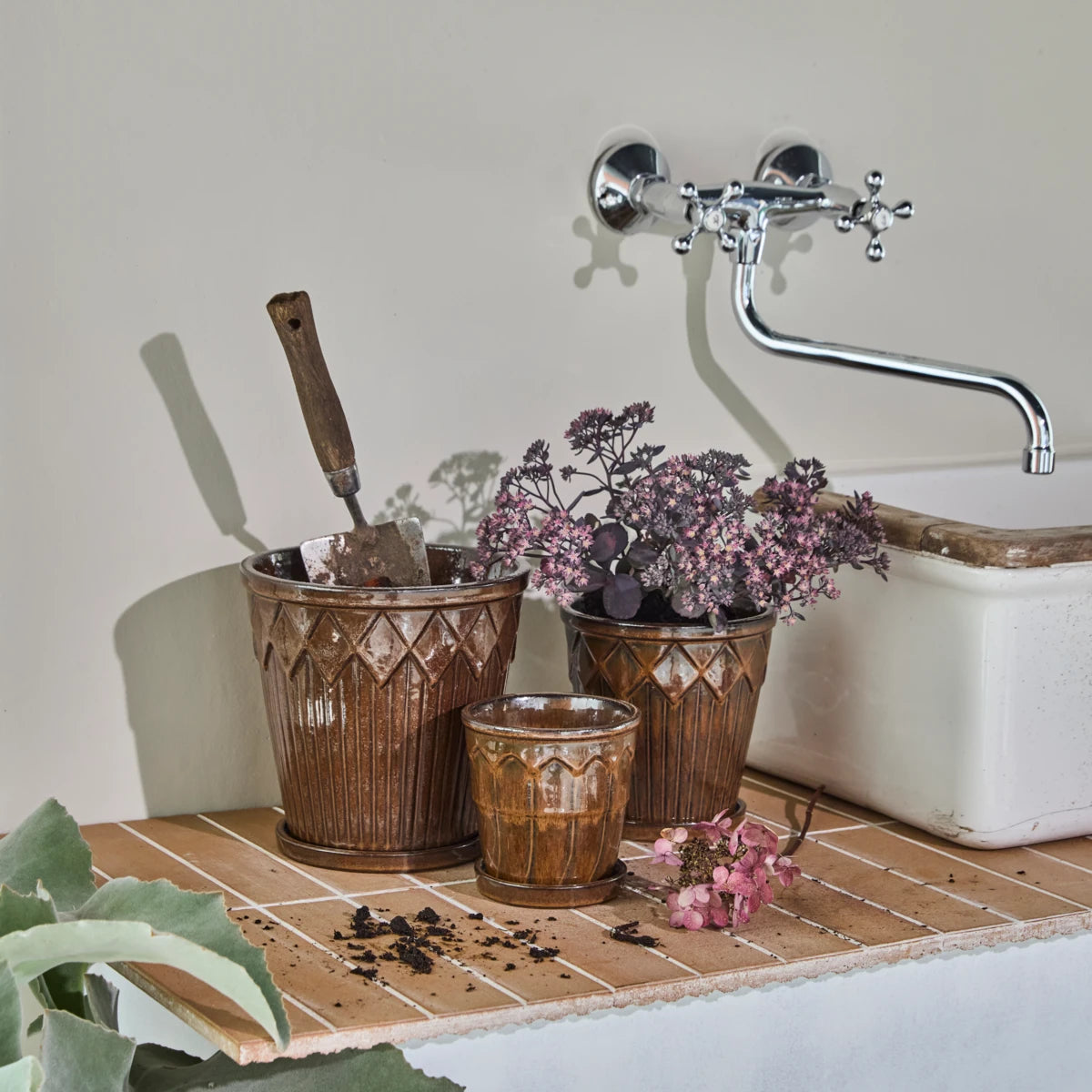 Add a touch of rustic elegance to your home with this set of three HDCora planters. Crafted from earthenware and finished with a rich brown glaze, their intricate boheme pattern brings depth and character to any living space.