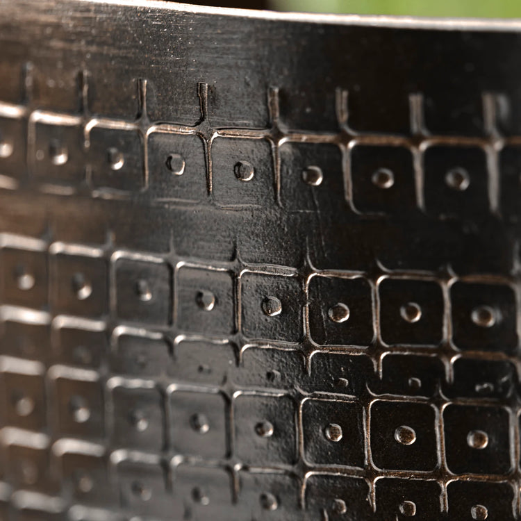 Introduce character and charm to your décor with this exquisite set of planters, designed to complement both green and flowering plants. Crafted from aluminium, each planter boasts an antique brown finish and an intricate embossed pattern. These handmade pieces bring a touch of elegance and sophistication to your living space, enhancing its visual appeal.