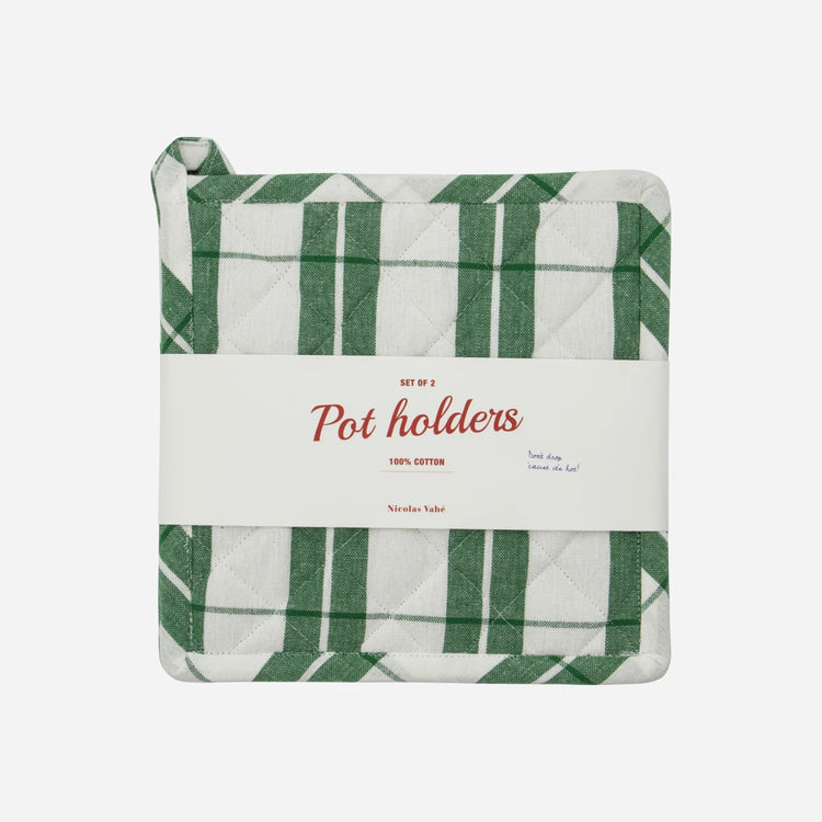 Brighten your kitchen and protect your hands with this set of two pot holders, woven in a lively green and white check. The yarn-dyed design stands out, adding a welcoming touch while giving you the grip you need when handling hot pans or trays. Soft 100% cotton delivers comfort and durability, while OEKO-TEX-certification lets you reach for quality you can trust. Hang them within reach by the stove or display them on a hook to showcase their cheerful pattern - they’re perfect for everyday cooking and dinner with friends.- Set of 2 included.- 100% cotton comfort.- Yarn-dyed checkered pattern.- OEKO-TEX-certified textile.Upgrade your kitchen essentials with this stylish, reliable pair.