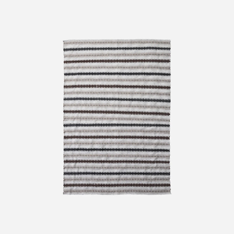 Give your terrace a timeless update with Terra. House Doctor has designed the rug with a timeless, geometric pattern in a neutral colourscheme to give you a contemporary item for your home. Made of recycled plastic bottles, the rug is durable and suitable for both indoor and outdoor use. Place the large rug underneath your outdoor coffee table, at the foot of your sofa or use it to frame your outdoor furniture and give your terrace a soft touch. Because it is so soft and comfortable to walk on, Terra is a wonderful alternative to a woollen rug. In addition, the colours are highly colourfast and UV resistant to make them suitable for outdoor use. As the rug is handmade, the finish, colour and size may vary. Even though the rug is suitable for outdoor use, prolonged exposure to the sun might cause vibrant colours to fade. If wet, either hang the rug to dry or roll it and leave it to dry in a standing position. We recommend drying it regularly to prevent build-up of mold.