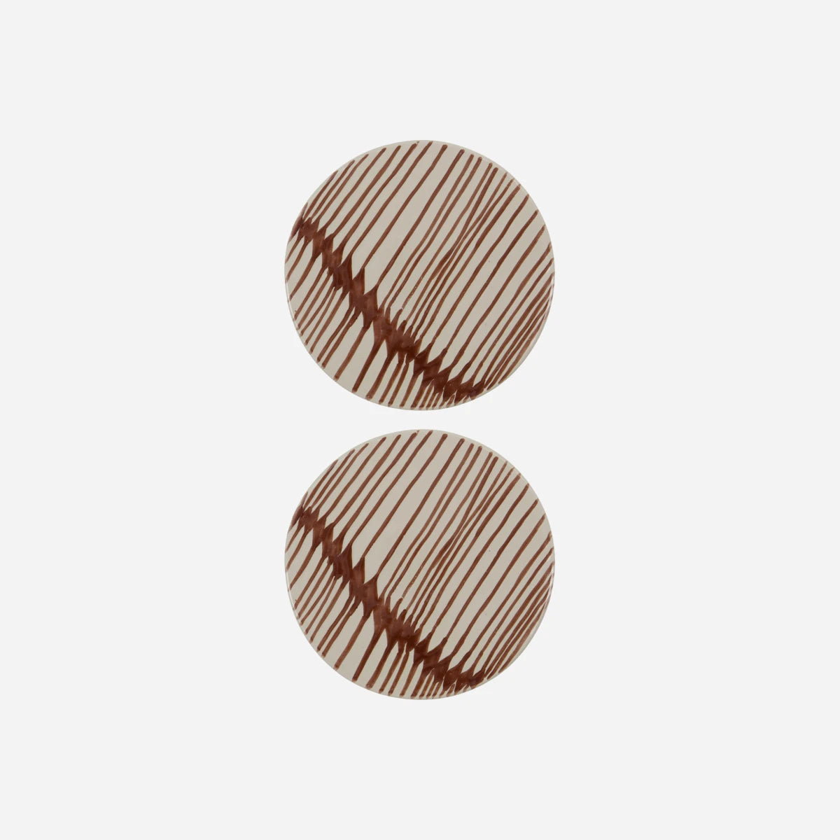 Add a modern touch to your dining experience with these ceramic serving boards. This set of two stoneware pieces features a minimalist design with hand-painted brown stripes, offering a stylish and functional approach to serving. Ideal for tapas, cheeses, or desserts, they provide a perfect sharing board for two, whether you're enjoying tea, coffee, or a glass of wine.
