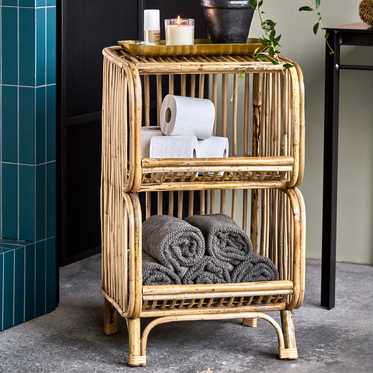 Handmade from natural cane, this piece brings a touch of nature and warmth to your home. With its stylish and practical design, it suits various spaces like the bathroom for towels or the living room for blankets and knitting supplies. The unique variations in finish and size highlight its artisanal quality, making each piece one-of-a-kind. Place a tray on top to display your favourite items and personalise your interior.