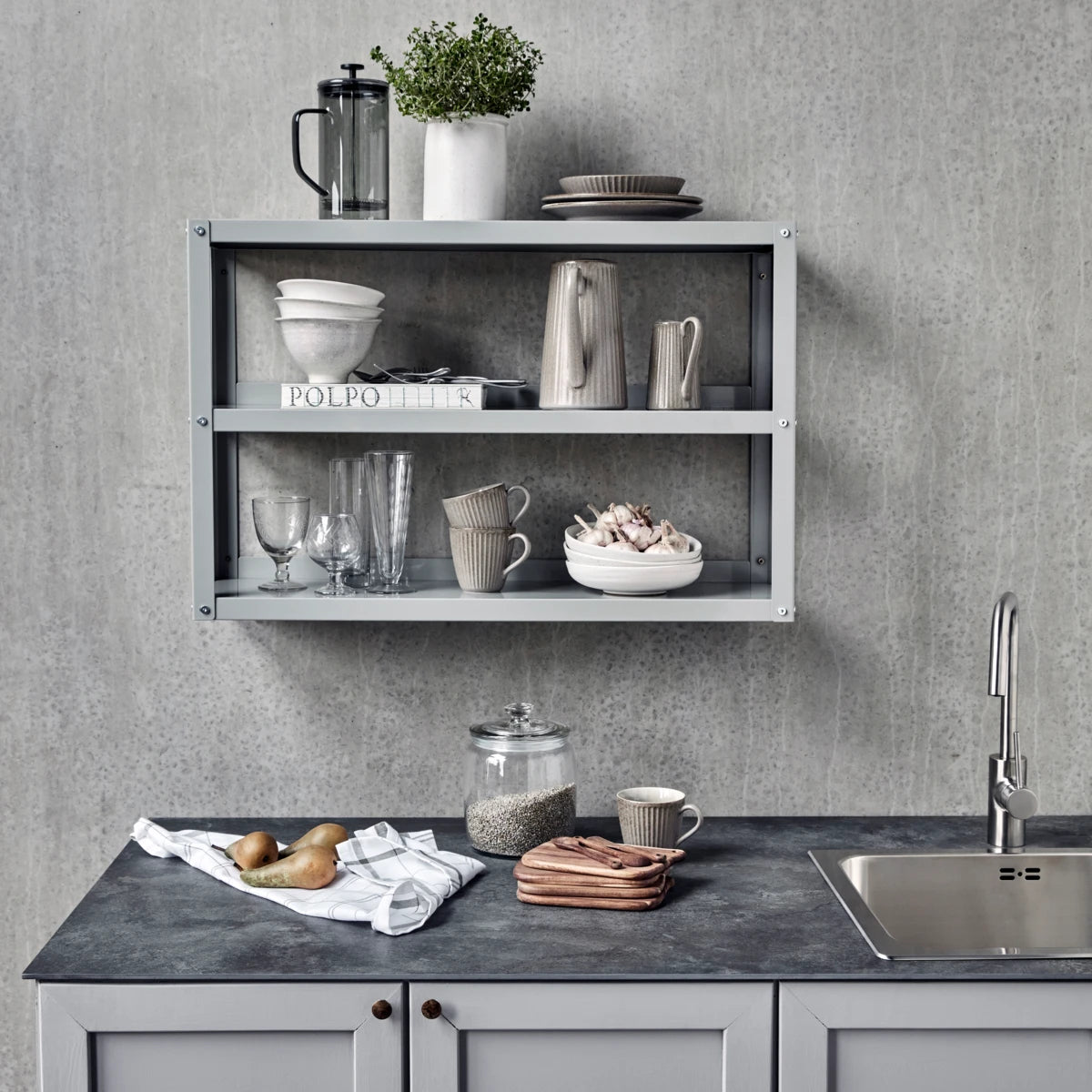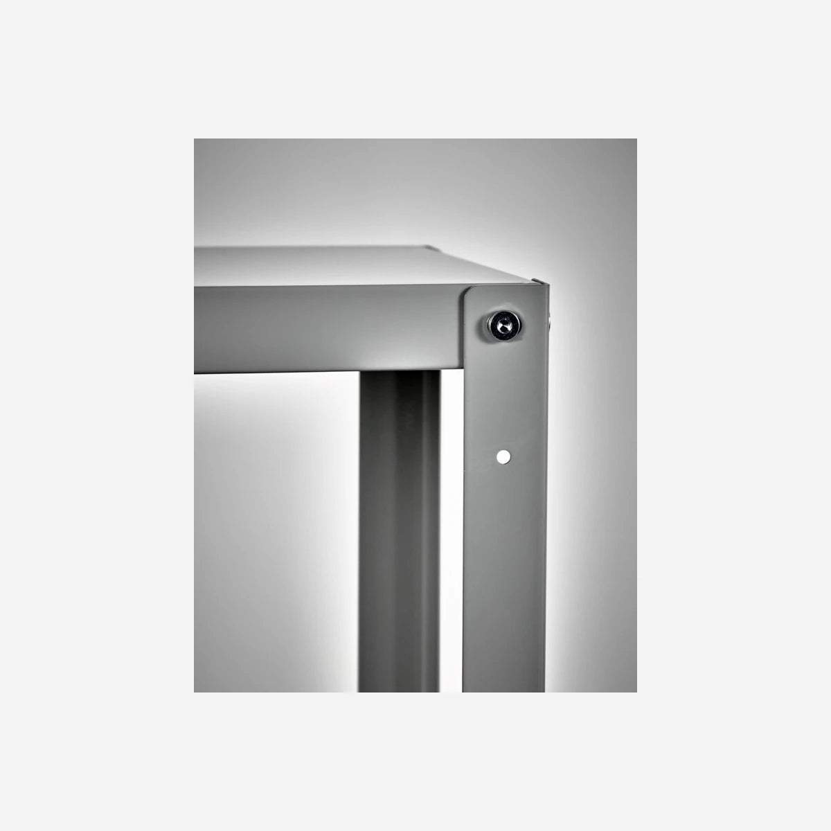 This sleek and modern shelving unit combines functionality with minimalist design to elevate your space. Made from durable steel with a shiny finish, this light grey bookcase is a timeless piece that complements any decor. Personalise your home with this eye-catching and versatile shelving unit.- Three shelves for ample storage- Holds up to 5 kg per shelf- Made of sturdy steel- Shiny light grey finishEnhance your home with this stylish and functional shelving unit.