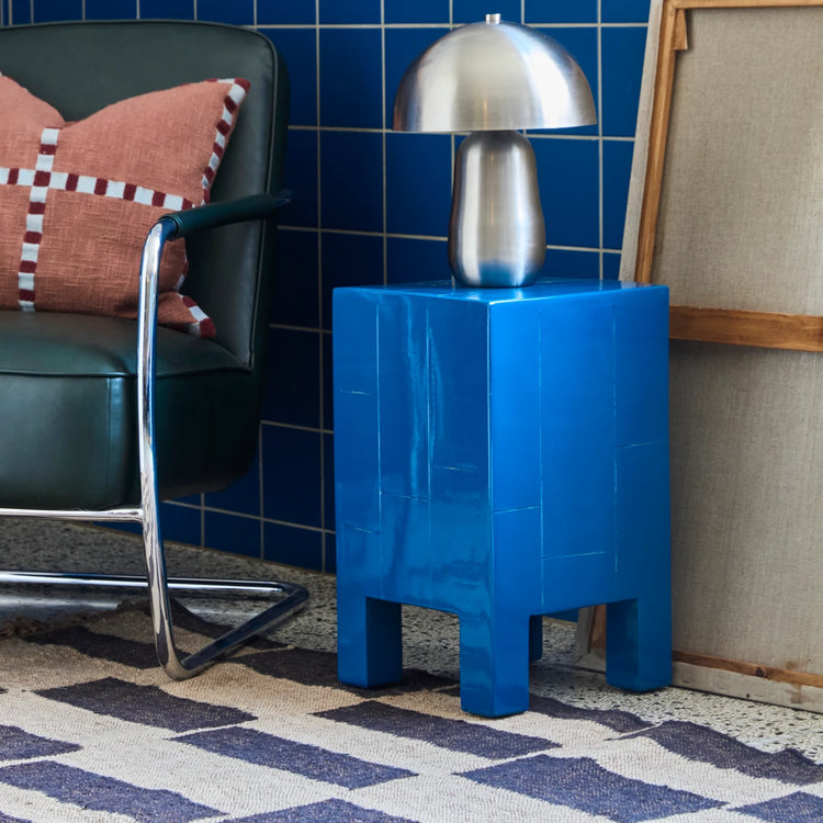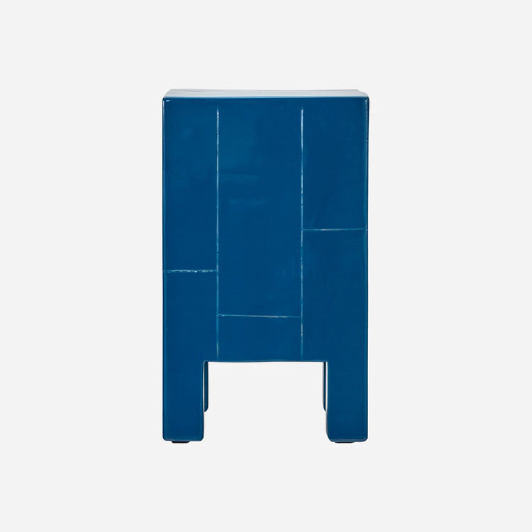 This high gloss blue side table doubles as a sculptural focal point for your living room or bedroom.