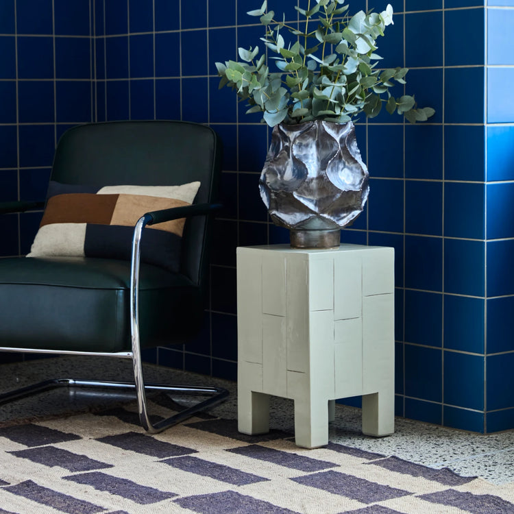 Mango wood tiles bring a tactile, handmade finish, while the bold lacquered colour ensures it stands out in your interior.