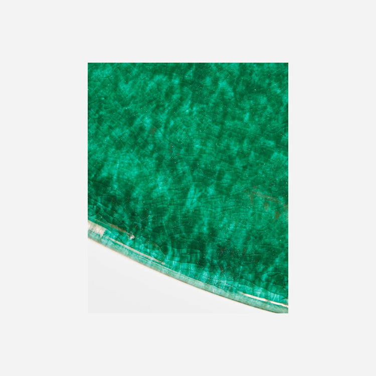 Introduce a touch of modern artistry to your home with this handmade ceramic side table. Its glossy green glaze is uniquely varied, offering a dynamic array of tones that exude personality and style. This piece is both cool and contemporary, making it a versatile choice that can seamlessly complement any room in your interior. - Handmade ceramic craftsmanship - Glossy, varied green glaze - Modern design with personality - Versatile for any room Add this unique side table to your decor and enjoy its stylish charm.