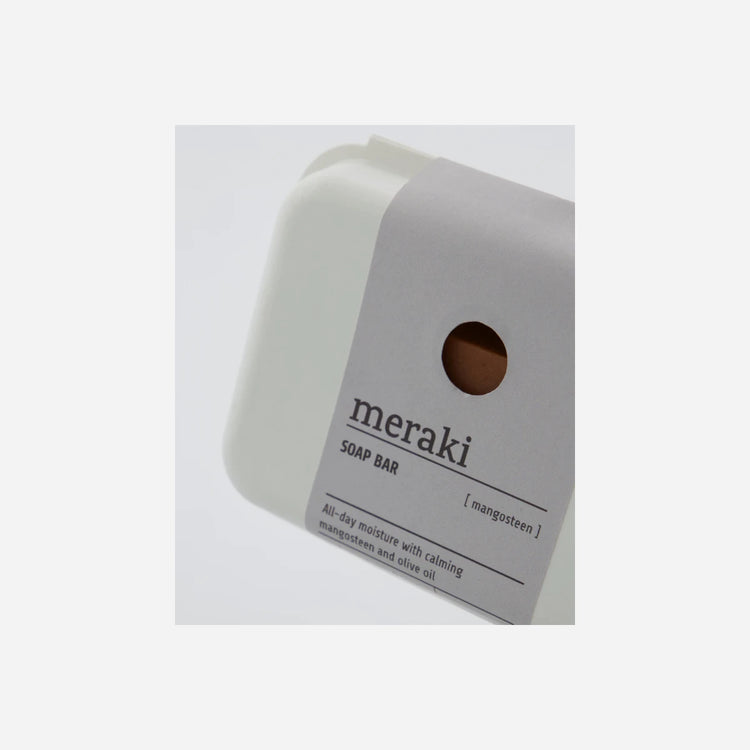 All-day moisture with calming mangosteen and olive oil. This soap bar from Meraki is formulated with mangosteen - a small, exotic fruit with antioxidant compounds that protect your skin from free radicals and have a calming effect. Olive oil makes sure that your skin stays properly moisturised throughout the day. Place the soap bar in a soap dish in your bathroom or kitchen.