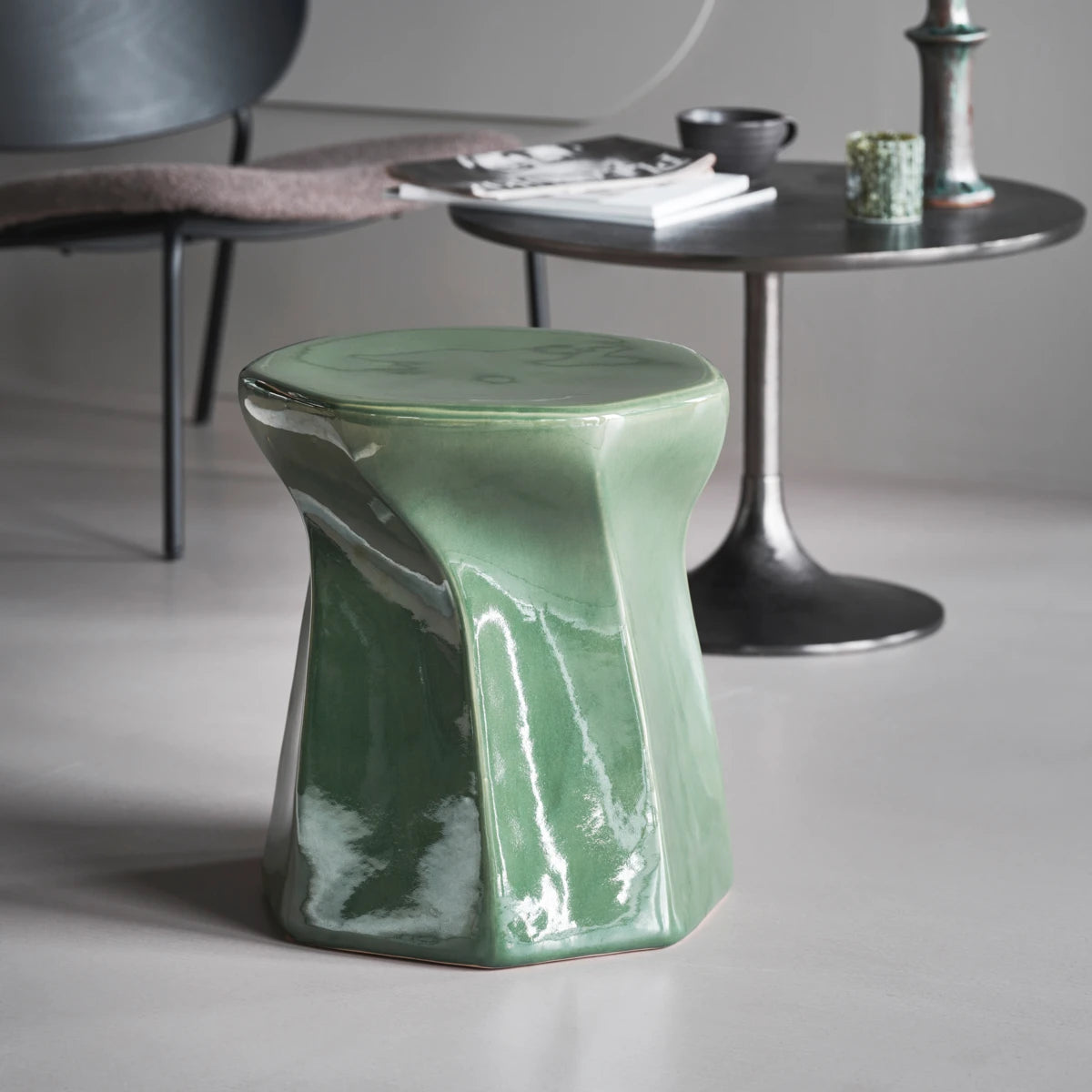 Bring a casual touch into your home decor with this handmade stool from House Doctor. The stoneware design has been given a twist which highlights the smooth, green glaze. That is all it takes to update your home decor. Given its sculptural appeal, there are so many ways to use the stool. As extra seating when you are having friends over, as a gorgeous side table or even as a pedestal when you want to highlight a favourite vase or tray filled with trinkets. This stool does it all.