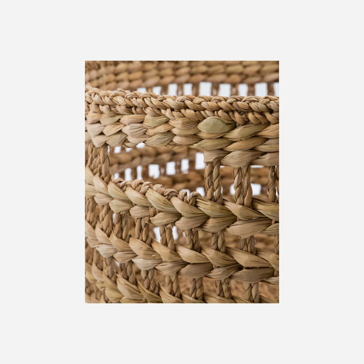 Add a touch of natural elegance to your home with these handmade seagrass baskets. Perfect for storing towels, blankets, and pillows, their open weave pattern combines functionality with a stylish aesthetic. Each basket is unique, adding a charming, rustic vibe to any room.- Handmade seagrass baskets- Set of two sizes- Natural colour- Open weave patternElevate your storage solutions with these beautifully crafted baskets.