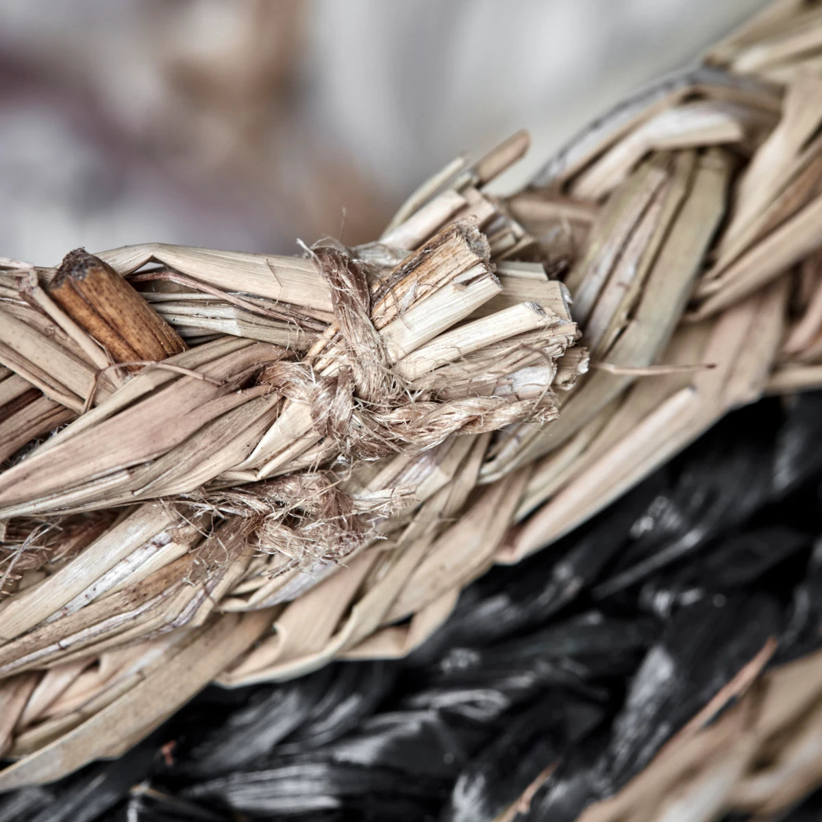 Add a touch of natural elegance to your home with these handmade seagrass baskets. Perfect for storing small items, they bring a relaxed and informal atmosphere to any room.- Handwoven seagrass- Natural and black stripes- Set of two sizes- Unique variationsAdd these versatile baskets to your home for stylish and functional storage.