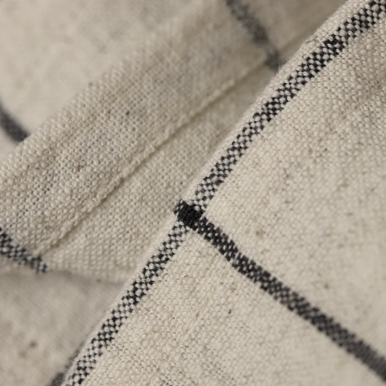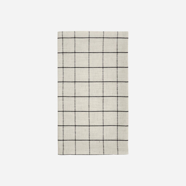 Introduce a timeless elegance to your dining table with this contemporary table runner. Crafted from a cotton-linen blend, it offers a super soft touch while its off-white backdrop with black grid lines ensures a modern aesthetic. This versatile piece easily complements various table settings and can be paired with patterned napkins for a cohesive look. - Cotton-linen blend. - Super soft texture. - Modern off-white and black design. - Oeko-Tex certified. Add a touch of sophistication to your dining table with this stylish table runner.