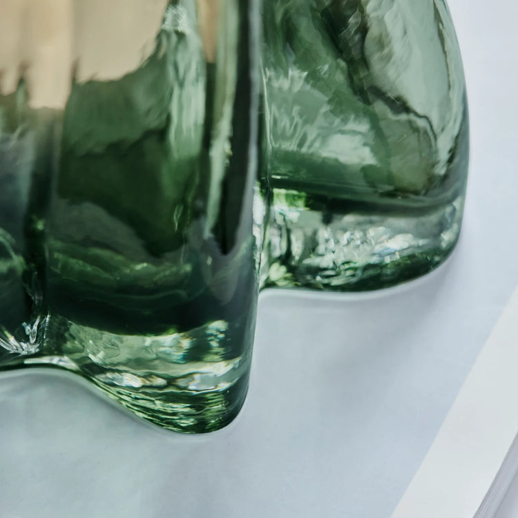 Add a touch of modernity to your home décor with this exquisite tea light holder. Crafted from mouthblown green glass, its unique design brings a splash of colour and a contemporary flair to your living space. The inviting glow it creates makes it ideal for creating focal points on your coffee table or shelf. Embrace the harmony of style and functionality with this stunning piece.
