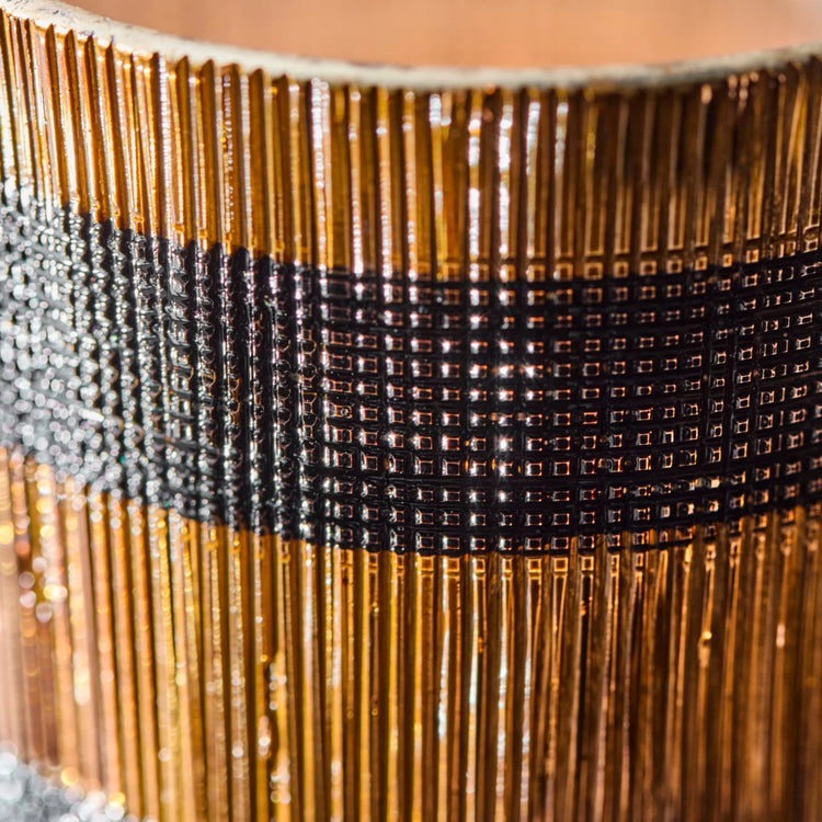 With this set of two handmade tealight holders in brown and black, you invite warmth, colour, and a relaxed bohemian vibe into your home. The elegant striped glass design casts patterned light, perfect for creating atmosphere anywhere - from the living room shelf to the dining table. Group them with other tealight holders for a unique and collected look that reflects your style.