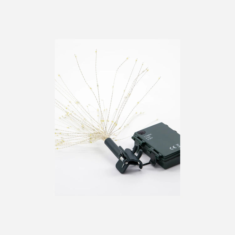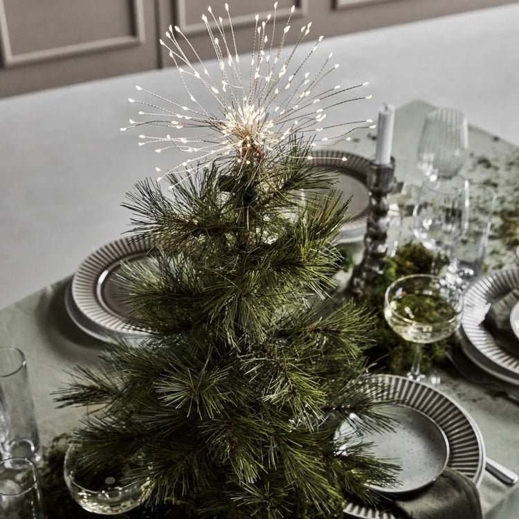 Make your Christmas tree shine with this LED top star. Featuring 180 small LED lights on delicate strings with a silver finish, it brings a radiant glow to your festive décor. Simply unfold the LED strings to create a brilliant starburst effect. The bottom clip ensures easy and secure fastening to your Christmas tree, while the battery-operated design includes a convenient timer function.- 180 LED lights- Elegant silver finish- Easy tree clip- Timer function includedIlluminate your holiday season with this dazzling tree topper.