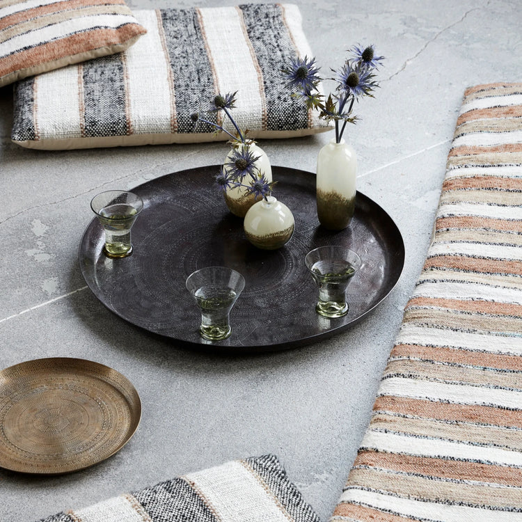 A beautiful tray frames your decorative items perfectly. This aluminium tray from House Doctor is called Jhansi and has a nice brass finish which is decorative in itself but will also look great in combination with other colours and materials. Use it to create a beautiful eye-catcher by using various decorative elements. Note: The finish of this product may vary.
