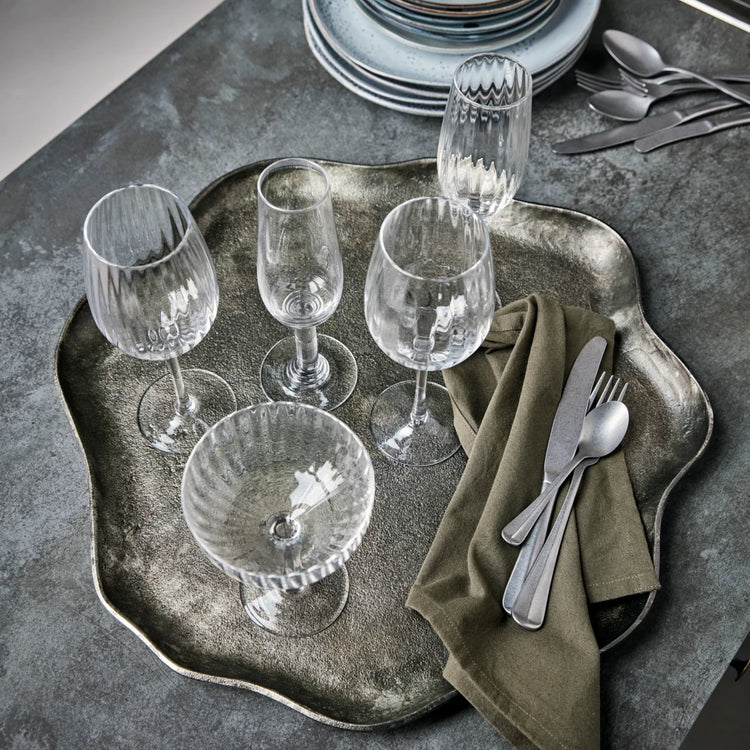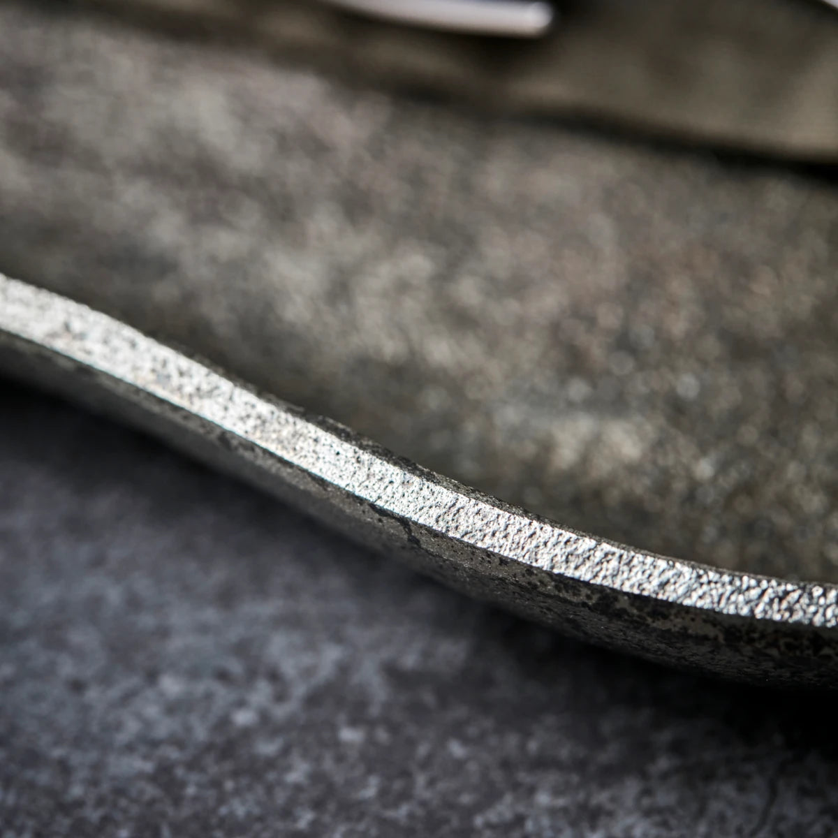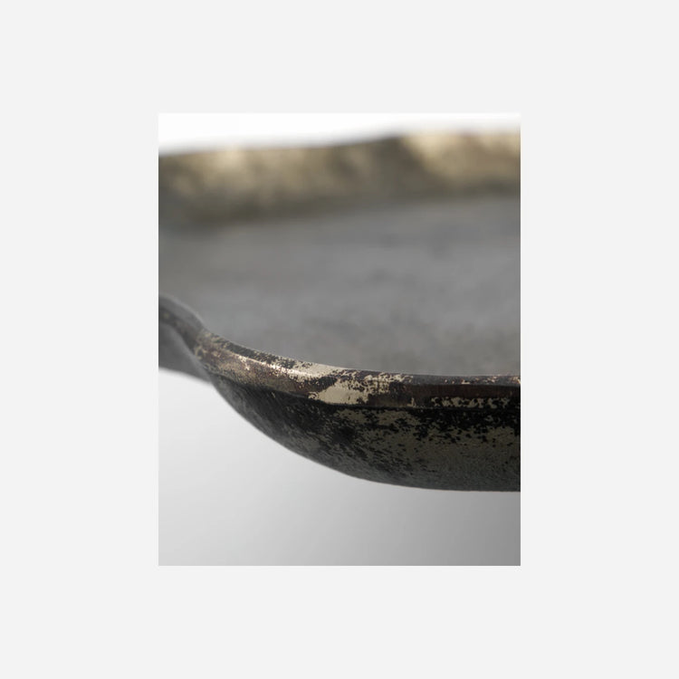 Crafted from aluminium with an antique black finish, this handmade tray elevates any space, whether used for decoration or serving. Its organic shape and unique variations add a touch of elegance and distinctiveness to your home.- Handmade craftsmanship- Unique antique black finish- Versatile serving or decorative use- Organic, eye-catching designEnhance your home decor with this exquisite tray.