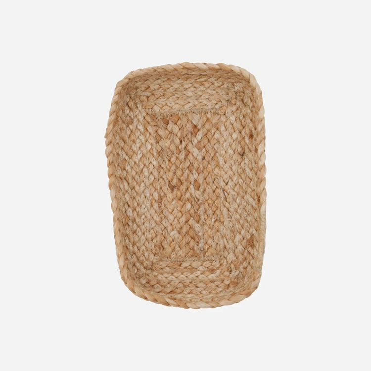 Add a touch of rustic elegance to your home decor with these handmade jute trays. Perfect for organizing your office supplies or displaying small guest towels in the bathroom, these trays offer both functionality and style.- Handmade craftsmanship- Natural jute material- Set of two sizes- Versatile for office or bathroomEnhance your home with these beautiful and practical trays.
