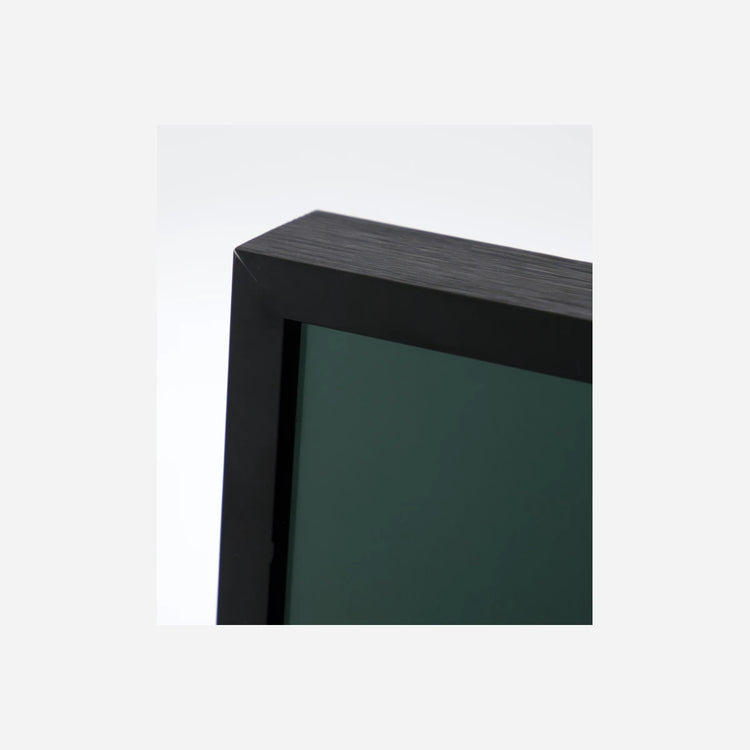 This wall art brings a feminine, artistic touch to any room, featuring a dark green background and an off-white floral motif reminiscent of delicate paper cuttings. The glass front and slim black aluminum frame add a fine, modern finish that elevates your hallway, living room, or bedroom. Group several green artworks for a stylish gallery wall or create contrast by blending in playful pieces for a bolder look.