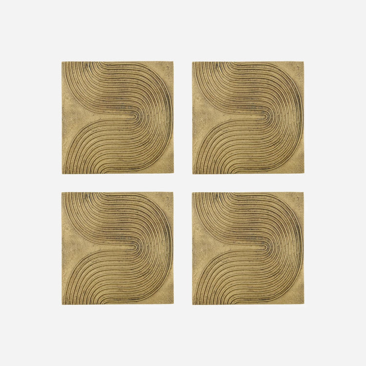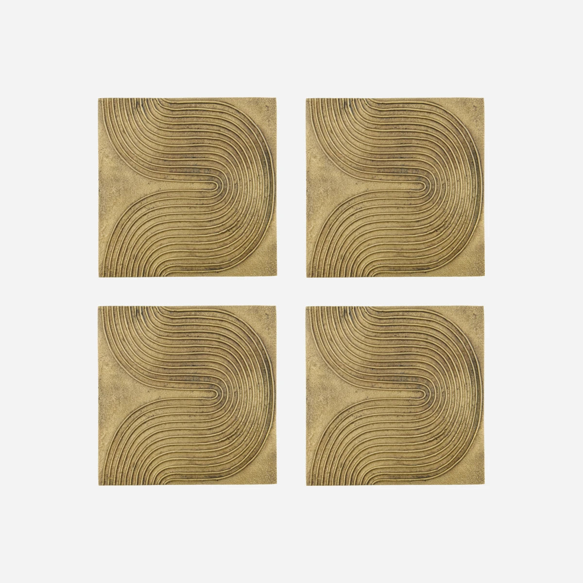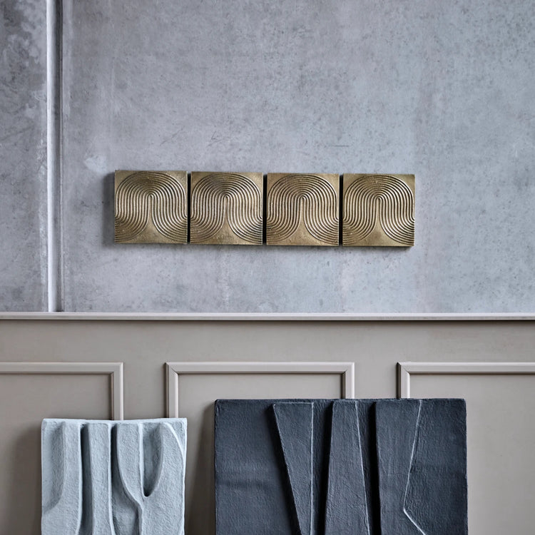 Elevate your interior decor with these handmade aluminium wall tiles, boasting an antique brass finish. The organic relief pattern allows for seamless connection between tiles, creating a unified and striking wall art display.- Handmade uniqueness- Antique brass finish- Organic relief pattern- Aluminium durabilityInfuse your home with artistic elegance. Order now and transform your space.