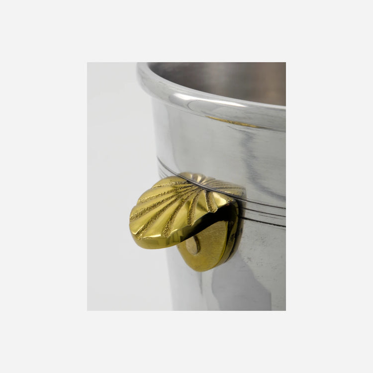 This handmade wine cooler in antique silver finish instantly elevates your table, adding vintage style with its elegant shell-inspired golden handles. Keep your favourite wines at the right temperature while serving a statement piece. Use it for dinner parties, celebrations, or as a conversation starter on your drinks trolley - its classic design enriches any cocktail hour.