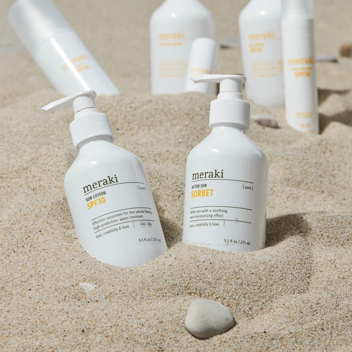 This velvety smooth PURE After Sun Sorbet is essential after spending time in the sun. Your skin is soothed with calming aloe vera while almond oil and vitamin E soften and maintain its elasticity. Pentavitin is added for its ability to give intense moisture, leaving your skin soft and smooth. The sorbet is quickly absorbed and leaves your skin smooth, moisturised and restored. Since the sorbet is perfume-free, carries the Nordic Swan Ecolabel and is recommended by Asthma-Allergy Nordic, it can be used by the entire family. Suitable for vegans. Apply a generous amount after being out in the sun.